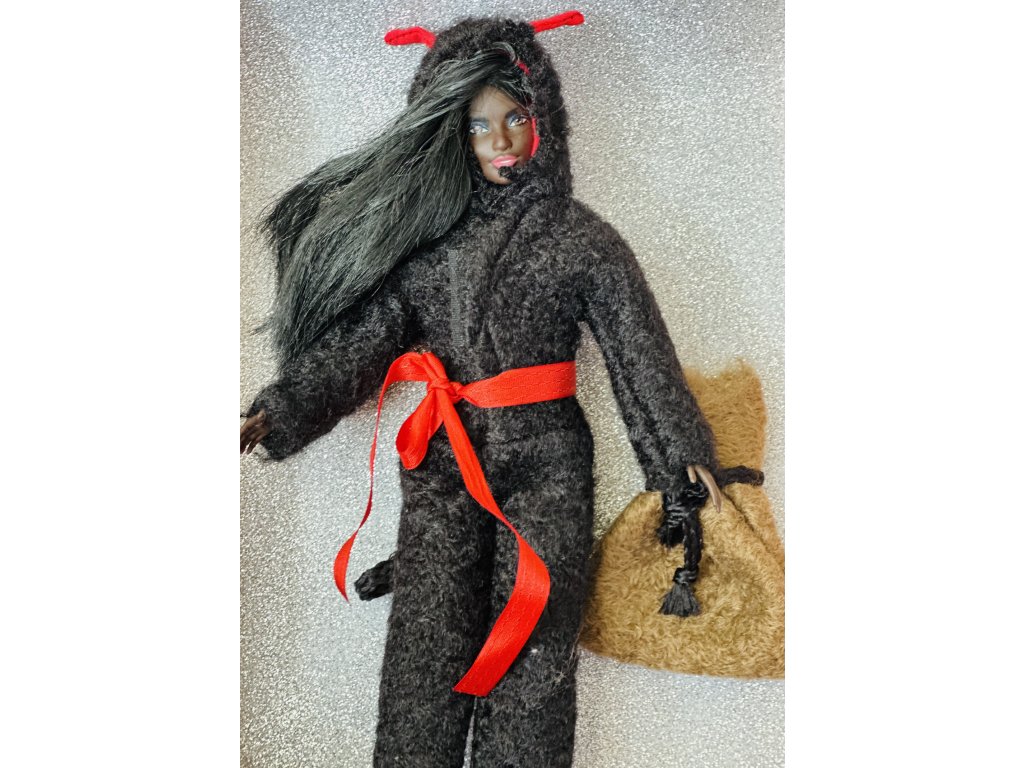 Panenka tmavší plety, dlouhé černé vlásky a ručně šitý čertovský kostým. Ideální dárek na Mikuláše pro každého malého uličníka 🌸🫶🏻