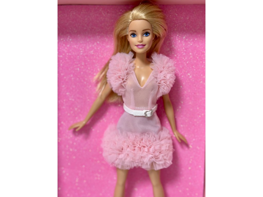 Barbie v šitém růžovém deluxe outfitu. Se zipem.