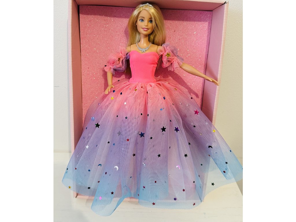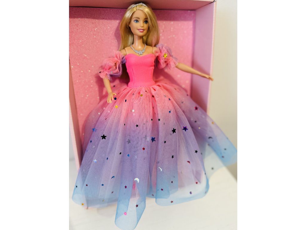 Barbie v hvězdných šatech.