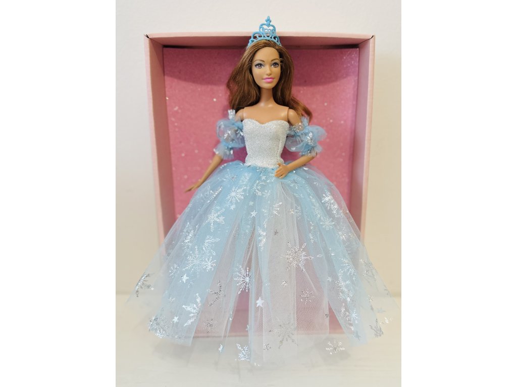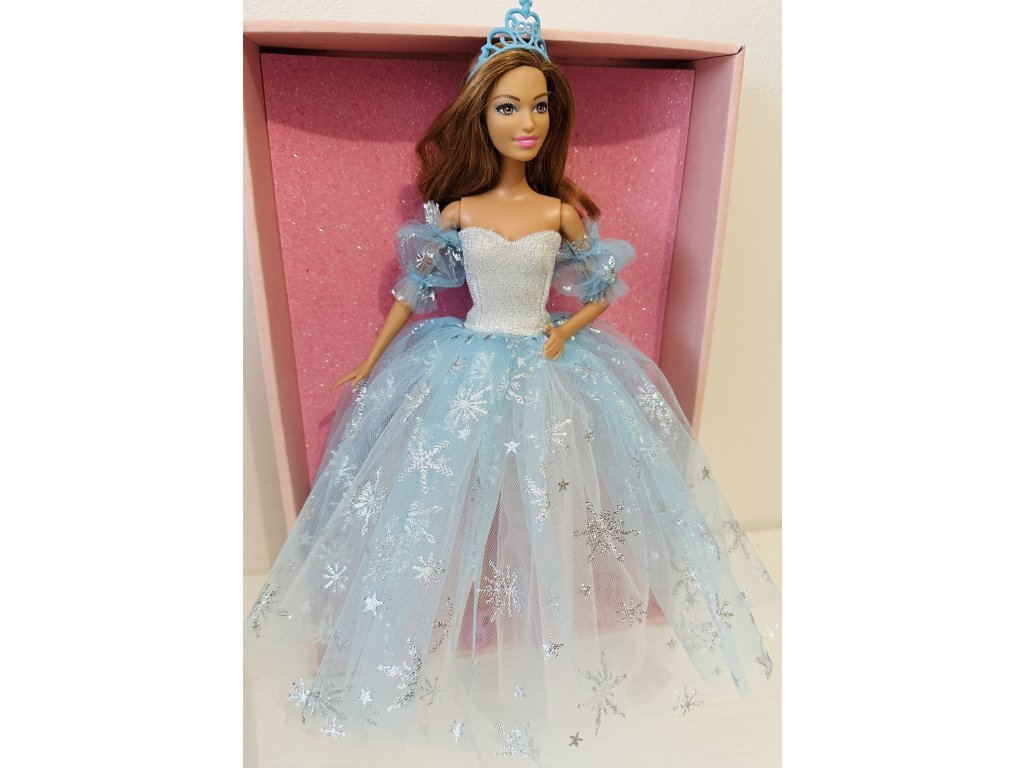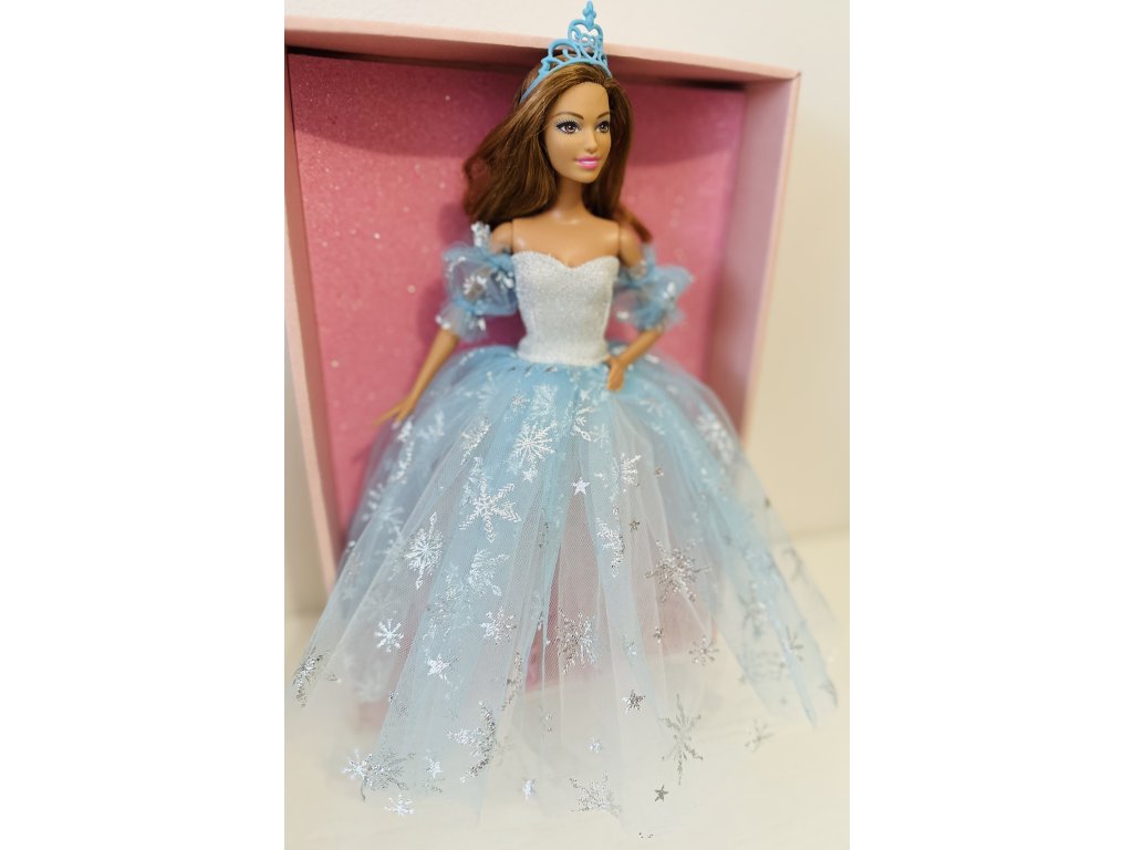 Barbie v plesových šatech s vločkami.