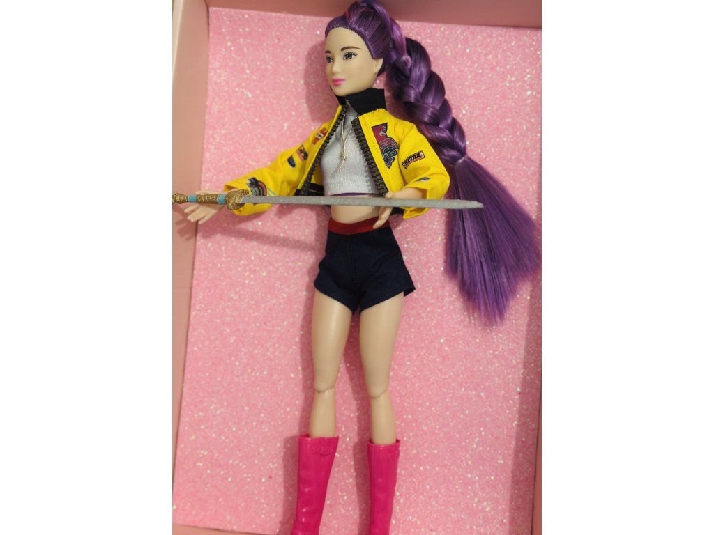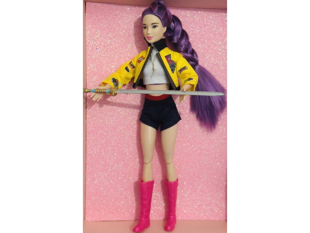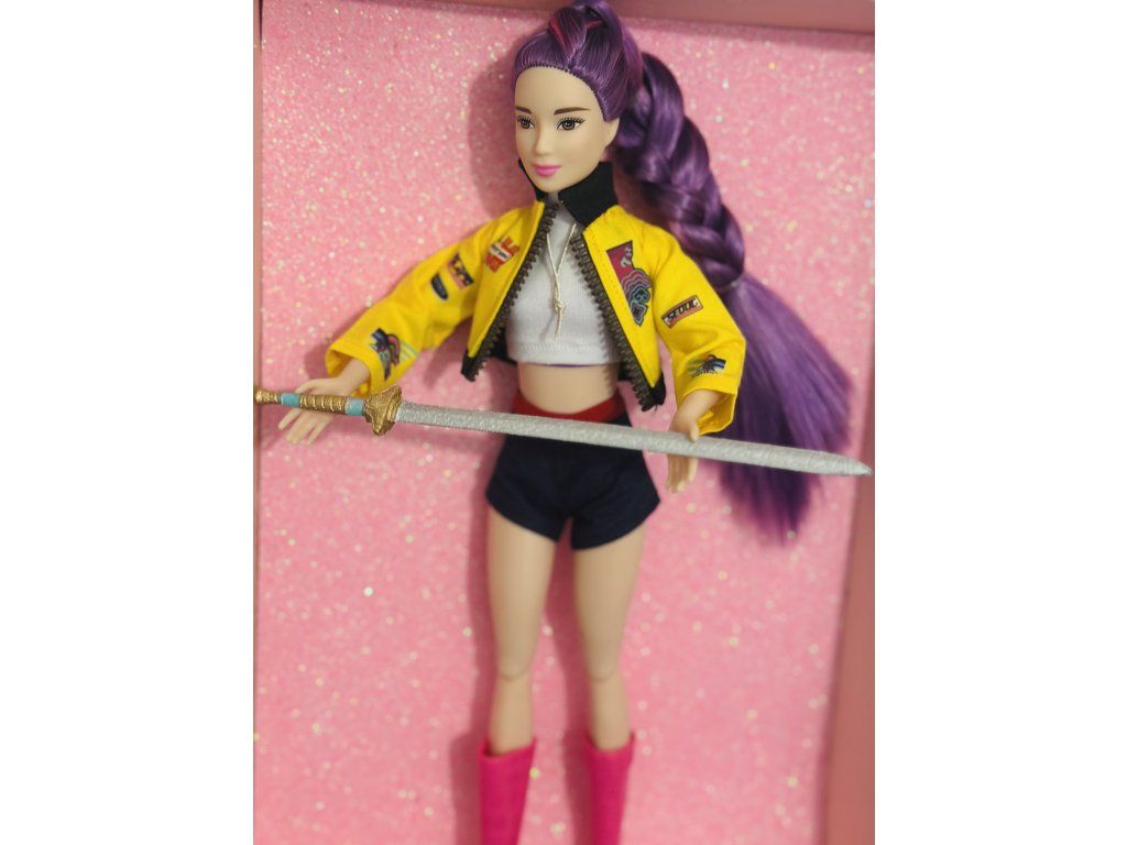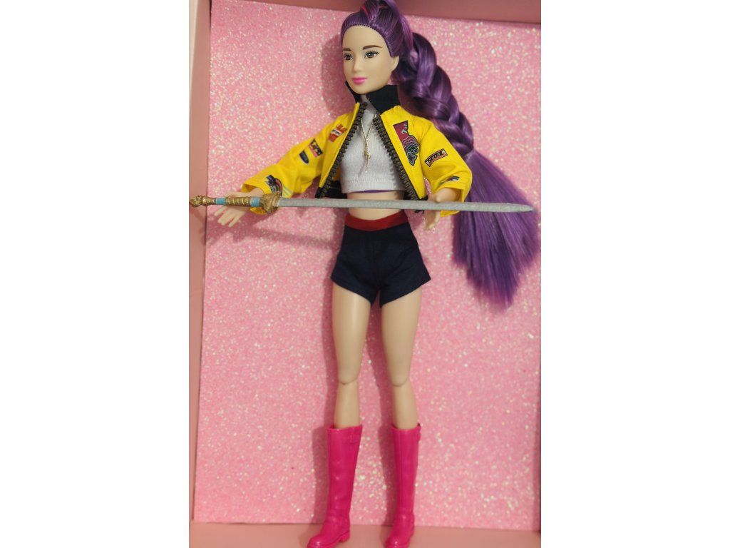 Panenka OOAK inspirovaná Rumi - plně kloubová s ručně malovaným mečem z 3d tisku.