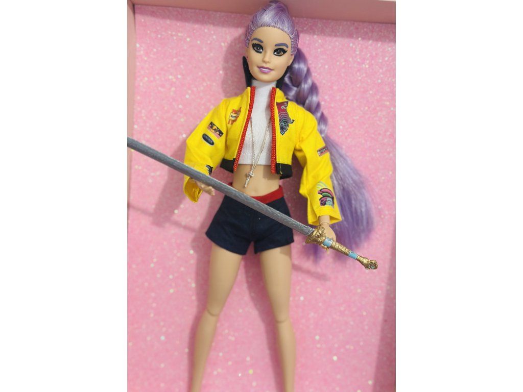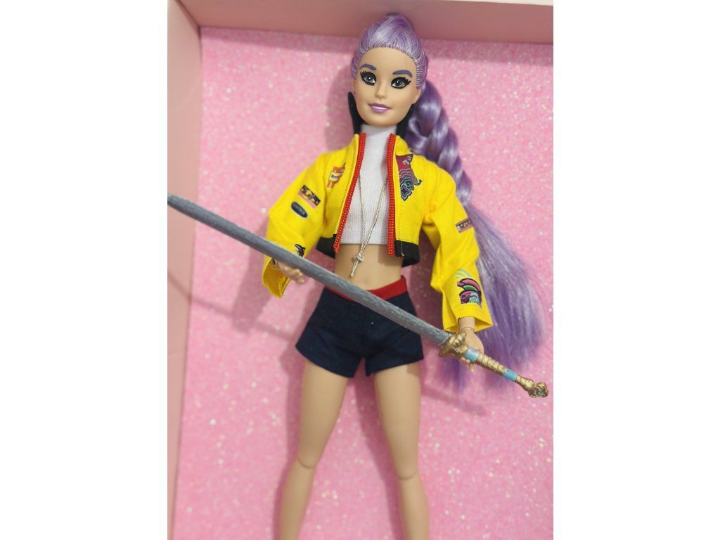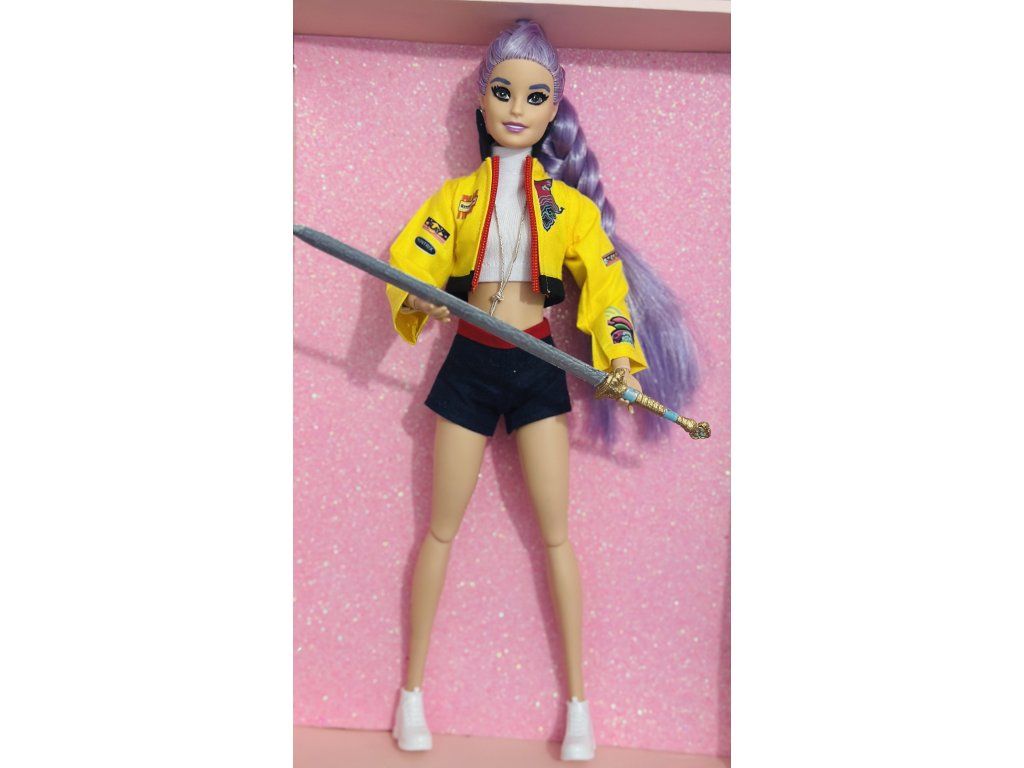 Panenka OOAK inspirovaná Rumi - plně kloubová s ručně malovaným mečem z 3d tisku.